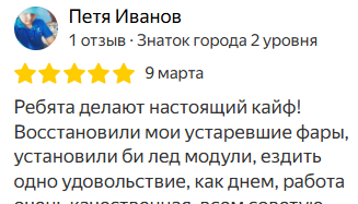 Огромный опыт работ в данном направлении, проверенное оборудование, тысячи реализованных проектов по эффективному и законному улучшению света фар.